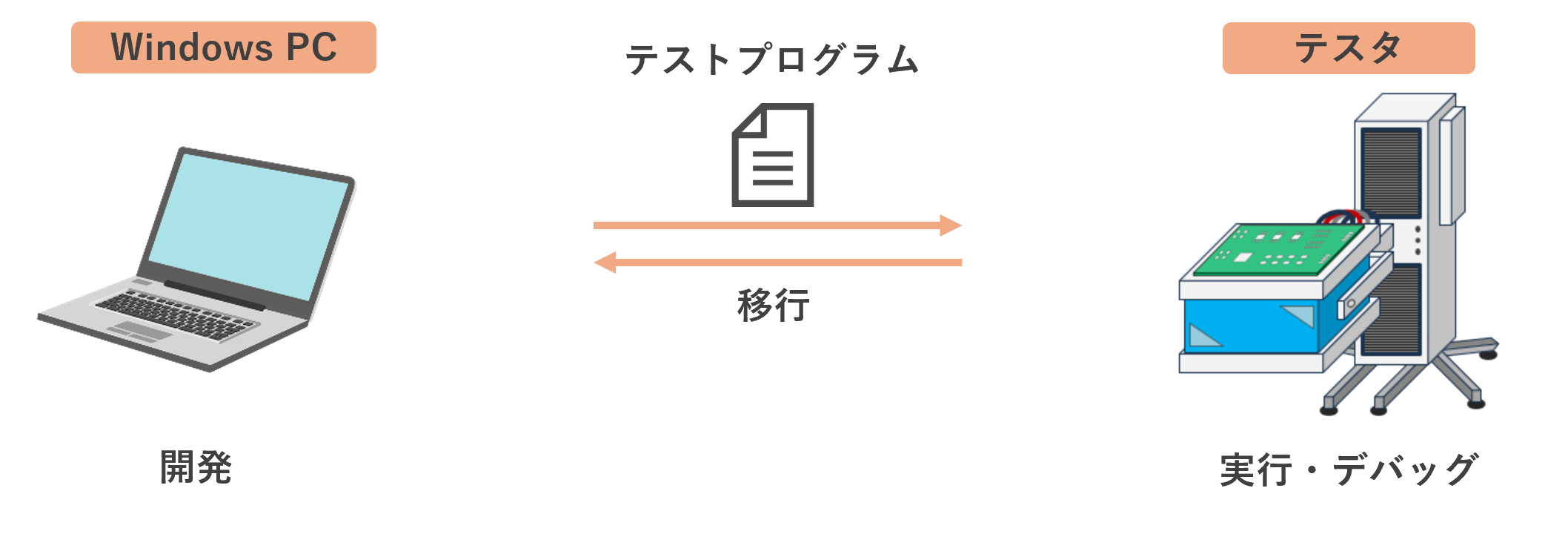 実機テスタへのデータ移行はテストプログラムを移すだけです。