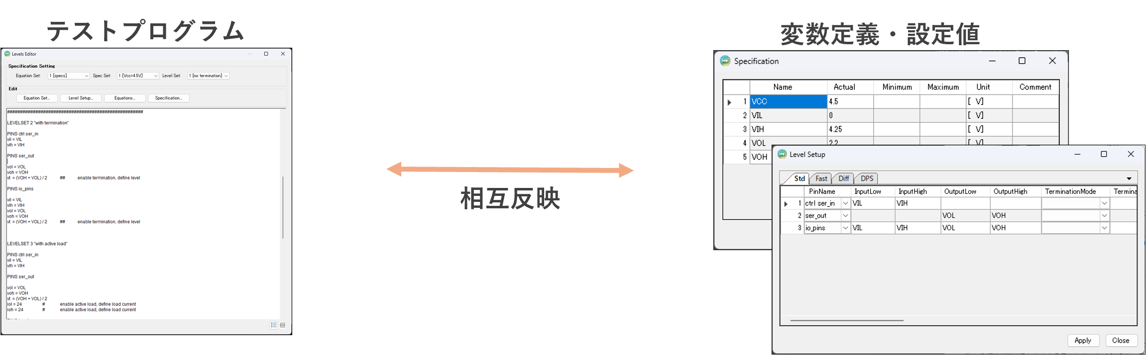 また、パラメータを変更する場合は、テストプログラムの修正箇所を探すことなく編集が可能です。